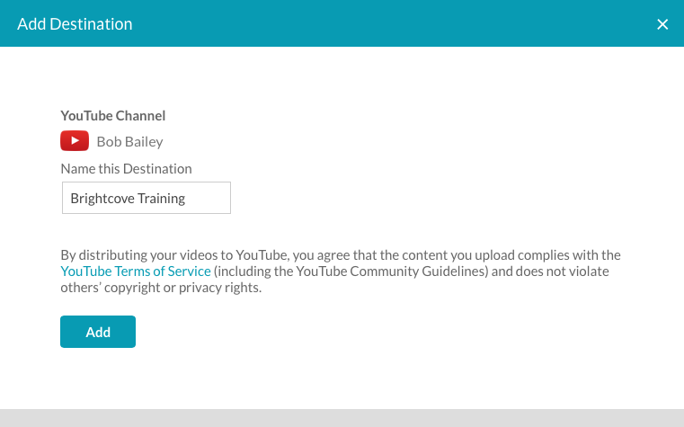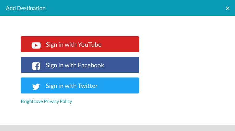게시 대상은 Video Cloud 비디오를 게시하려는 소셜 미디어 계정/페이지입니다. 브라이트코브 Social을 사용하여 소셜 미디어 계정에 비디오를 게시하려면 먼저 대상을 하나 이상 만들어야 합니다. 목적지는 유튜브, 페이스 북과 트위터에 동영상을 게시하기 위해 만들 수 있습니다.