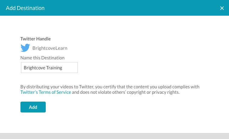 Twitter 피드에 동영상을 게시하려는 경우 Twitter 대상을 만듭니다. Twitter 목적지를 만들려면 다음 단계를 따르세요.